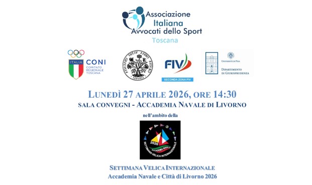 News 20 Apr 2026 Ordinamento Statale e Ordinamento Sportivo: autonomia e prospettive giuridiche Lunedì 27 aprile a Livorno, sarà di scena presso la sala convegni dell' Accademia Navale, alle ore 14,30, un' interessante TAVOLA ROTONDA con tema Ordinamento Statale e Ordinamento Sportivo: autonomia e prospettive giuridiche, organizzata dall'...