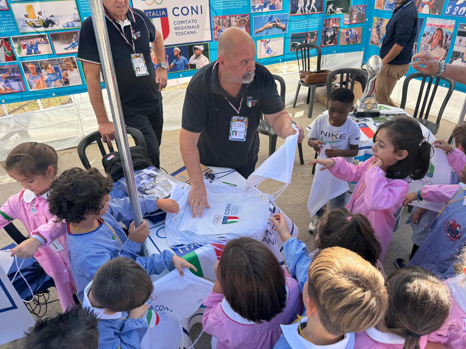 Una galleria di foto sportive, molto significative, ha rappresentato la "casa Coni" ed (nella foto) un gruppo di bambini impegnati a ricevere il gadget che il CONI ha portato in regalo. Come si dice "Si impara da piccoli" !!!!